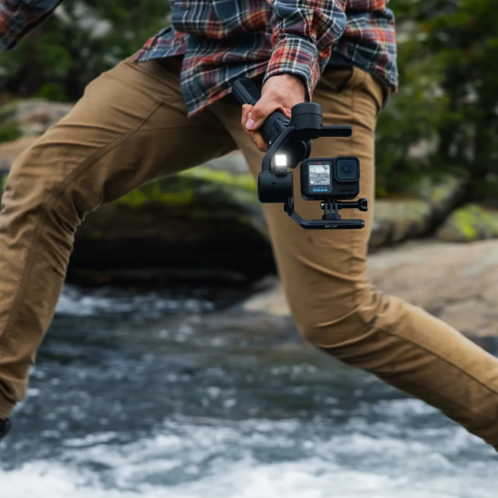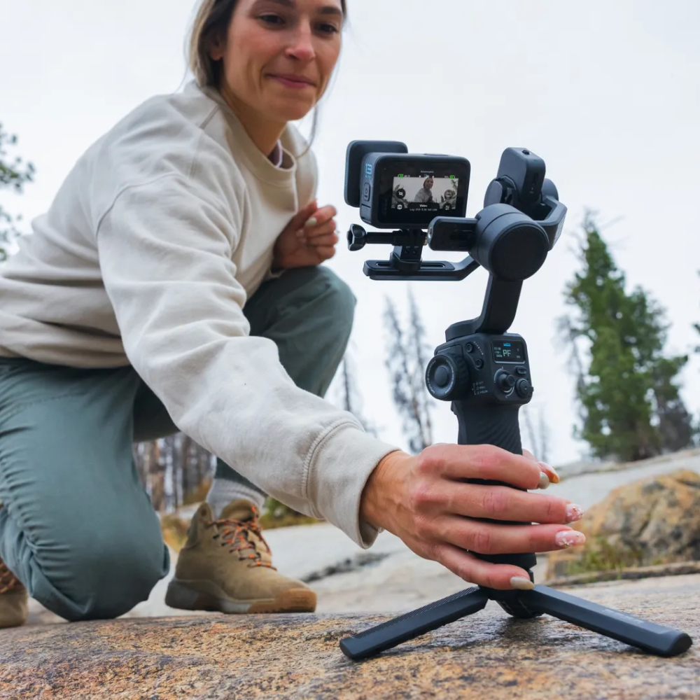 Fluid Pro AI – это универсальное устройство, которое мы можем использовать и как штатив, и как селфи-палку. Модель совместима с любыми смартфонами, камерами GoPro, а также с фотоаппаратами весом до 400 г. Такое разнообразие инструментов позволяет нам создавать действительно разнообразный контент без особых усилий, снимая там, где нужно. Встроенная стабилизация видео нивелирует наши движения, делая съемку более простой. А ИИ-отслеживание объекта позволяет нам одним жестом или фокусом задать то, за чем штатив будет наблюдать и снимать спортивные соревнования, животных, транспорт, себя и других людей легко и без лишних усилий.