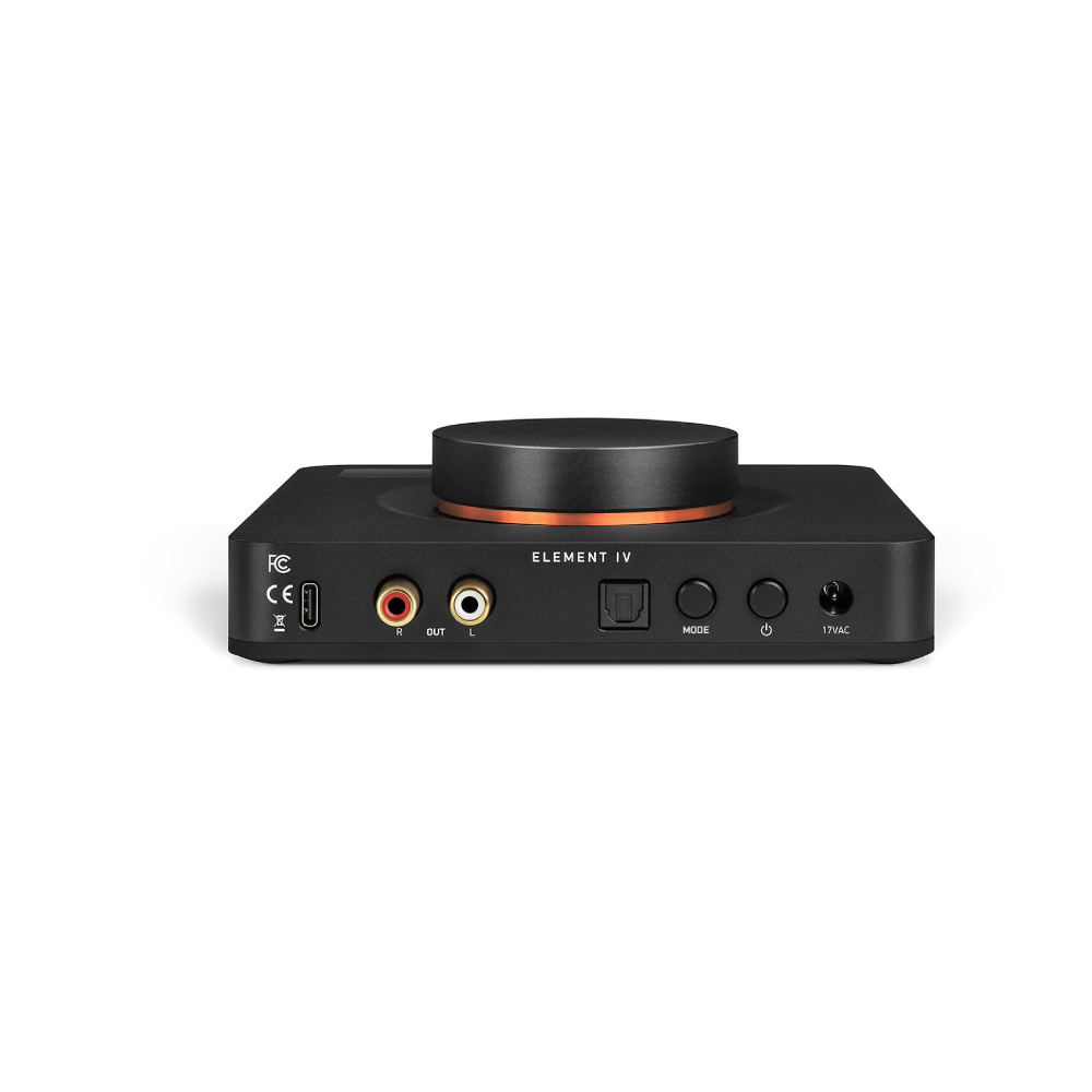 Element IV оснащен небольшим дисплеем, гаснущим как только мы ввели все нужные параметры, чтобы ничто не отвлекало нас от музыки. Модель способна выдавать мощность в 3200 мВатт на канал, что в разы превышает возможности обычных наушников, оптимизируя звучание, сводя его вместе и делая более насыщенным и объемным. Устройство поддерживает синхронизацию с Windows, macOS, Linux, Android, iOS, PS5 и Nintendo Switch, а значит — мы можем сделать качественной не только свою музыку, но и игровой опыт. Переключаться между девайсами можно мгновенно, поворотом колеса настройки. Тактильный вращающийся переключатель позволяет нам быстро менять основные параметры, не отвлекаясь от работы, отдыха или игры.