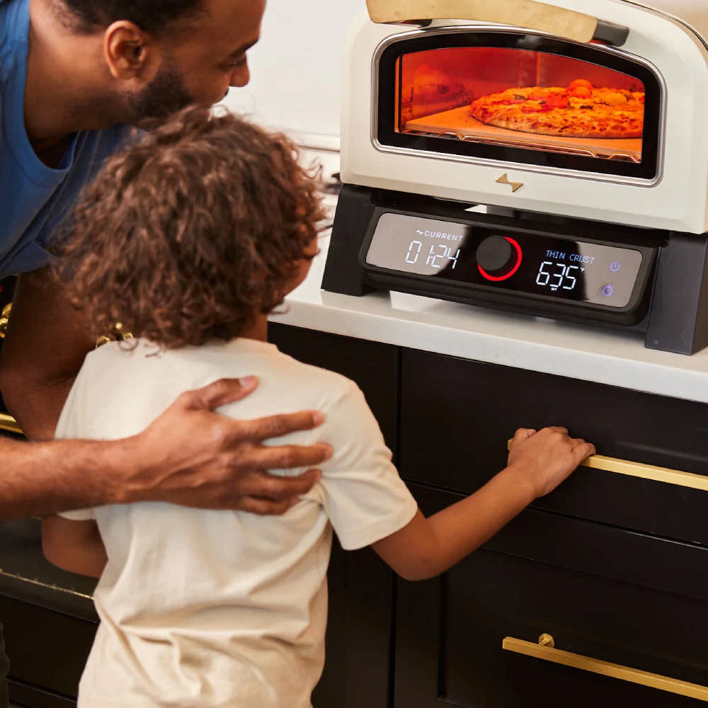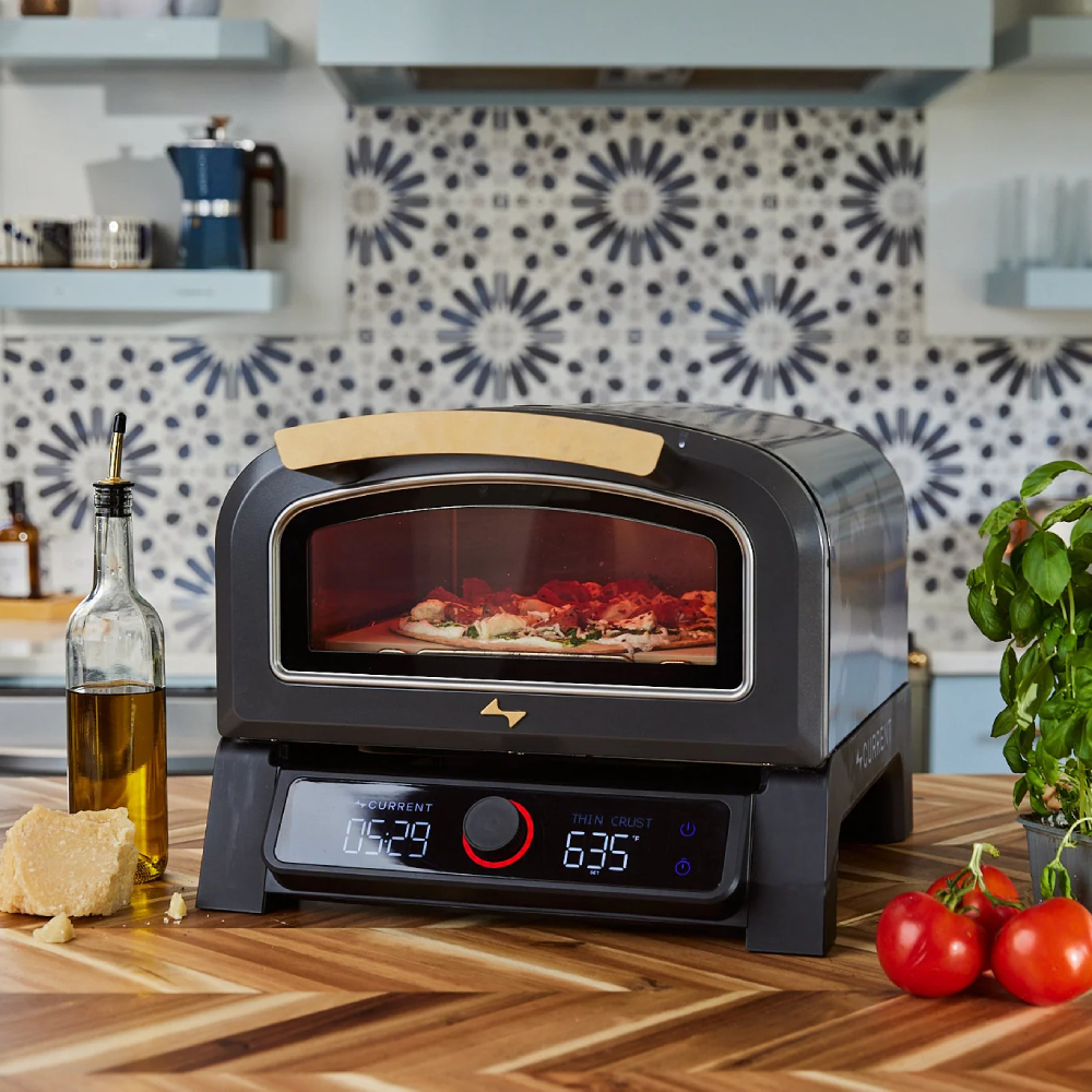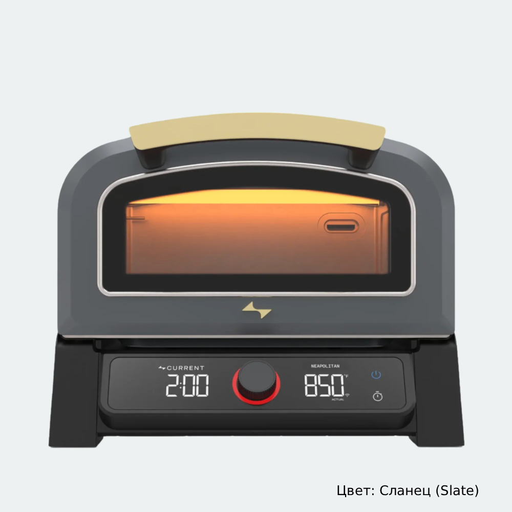 Current Model P – это небольшая электрическая печь для пиццы, которая легко поместится даже на самую маленькую кухню. При всей своей миниатюрности, устройство оснащено целыми 8 функциями — оно может готовить неаполитанскую, нью-йоркскую, детройтскую пиццу, пиццу из тонкого теста, замороженную, а также имеет программы запекания под грилем, выпечки и обжарки до хрустящей корочки. Всё это выполняется максимально быстро, например, для приготовления пиццы по неаполитанскому рецепту духовке достаточно всего 2 минут. Максимальная поддерживаемая температура составляет целых 454 °C, что дает нам возможность получать нашу пиццу практически мгновенно и упрощает достижение эффекта хрустящего и воздушного теста.