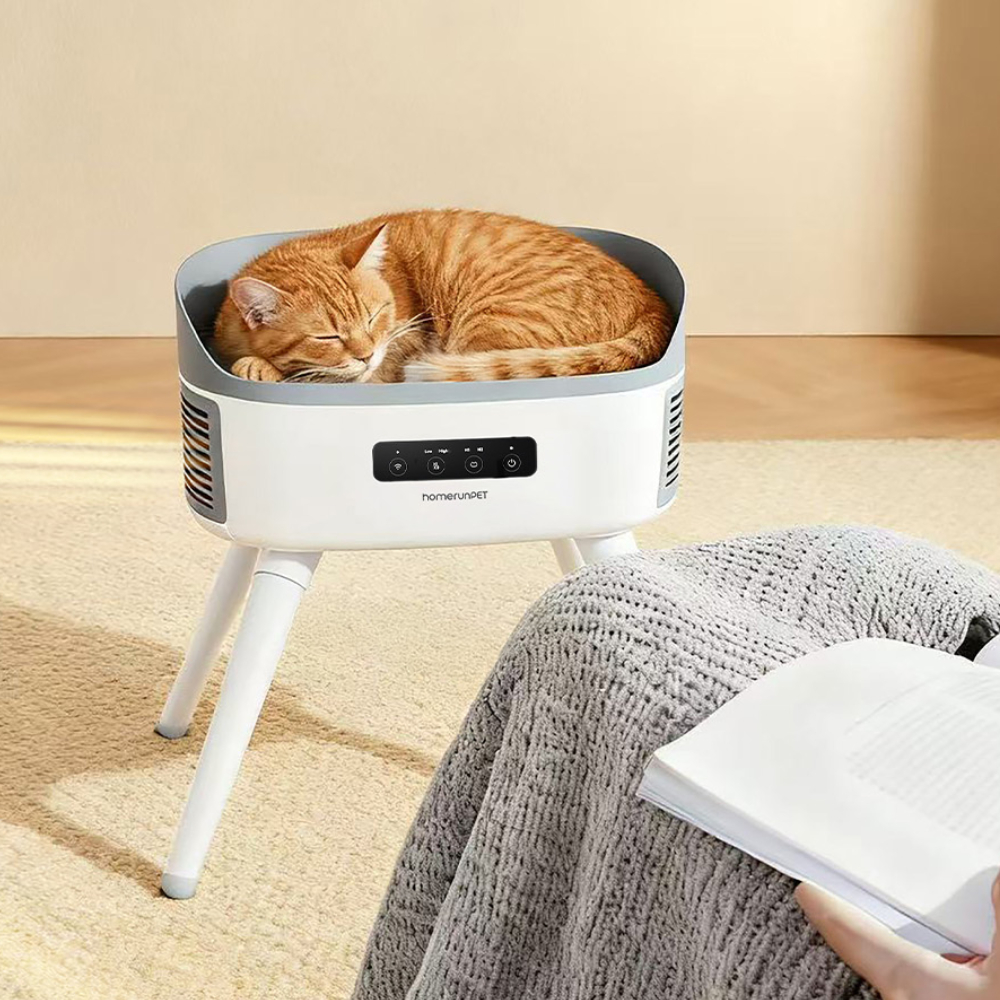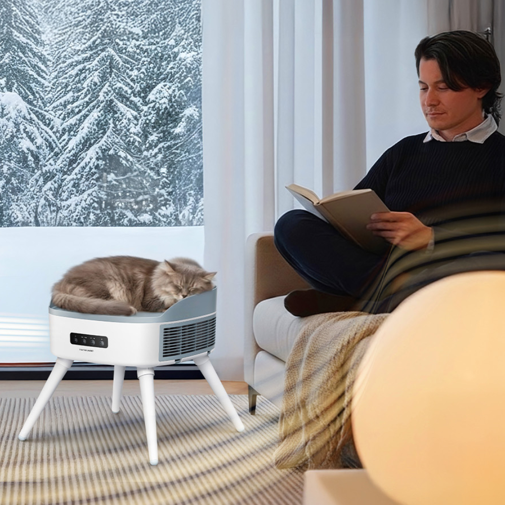 HomerunPET PH20 способен эффективно обогревать небольшие помещения. Мощность основного нагревательного элемента составляет целых 1500 Ватт, а мощность дополнительного, встроенного в лежанку — 60 Ватт. На боковой части предусмотрен высокий бортик, защищающий кошачьи лапы и хвост от соприкосновения с горячими частями устройства. Работает девайс очень тихо — его уровень шума составляет всего 40 дБ, а это тише, чем звук работающего холодильника. HEPA-фильтр рассчитан на дома с животными и отлично удерживает не только пыль, но и шерсть, выбрасывая в помещение уже очищенный горячий воздух.
