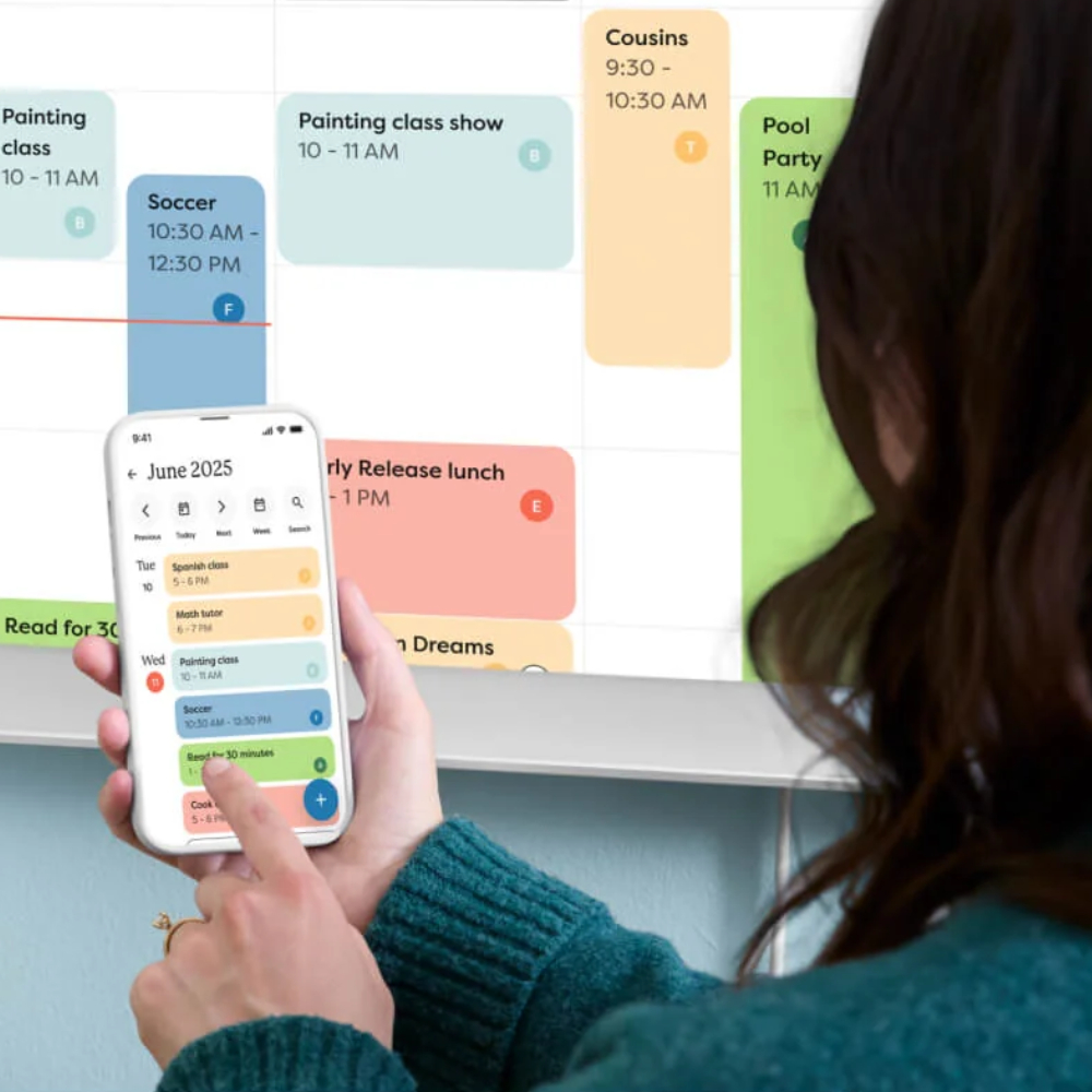 Skylight Calendar Max – это умный настенный календарь, который может сделать наши рутинные задачи проще и удобнее. Большой 27-дюймовый полноцветный дисплей с разрешением 2560x1440 Пикс помогает легко ориентироваться в функционале и устанавливать заставки. Модель предназначена для монтажа на стену и поддерживает как горизонтальное, так и вертикальное расположение. Синхронизация с Google, Outlook, Apple, Cozi и Yahoo позволяет нам мгновенно импортировать уже существующие календари и сохранить все наши задачи и важные даты. Большой сенсорный HD-дисплей делает удобным управление устройством дома, а бесплатное приложение для смартфона поддерживает функции удаленного контроля и напоминания. Цветовая разметка задач позволяет легко различать разные типы записей или категоризировать их отдельно для каждого члена семьи. Мы также легко можем составлять собственные списки задач, покупок и дел, которые будут доступны как в настенном календаре, так и в приложении.